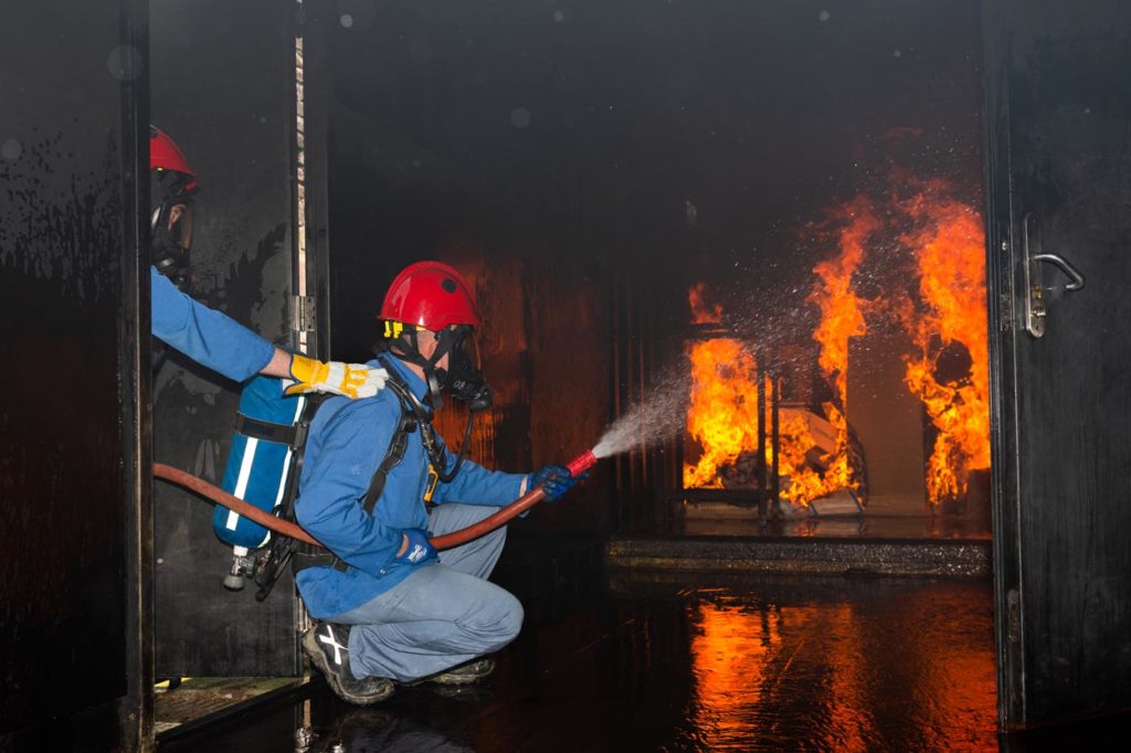 Personnel des entreprises à moyens et hauts risques industriels compte tenu de leurs activités, ayant à disposition des moyens d’extinction légers et lourds.